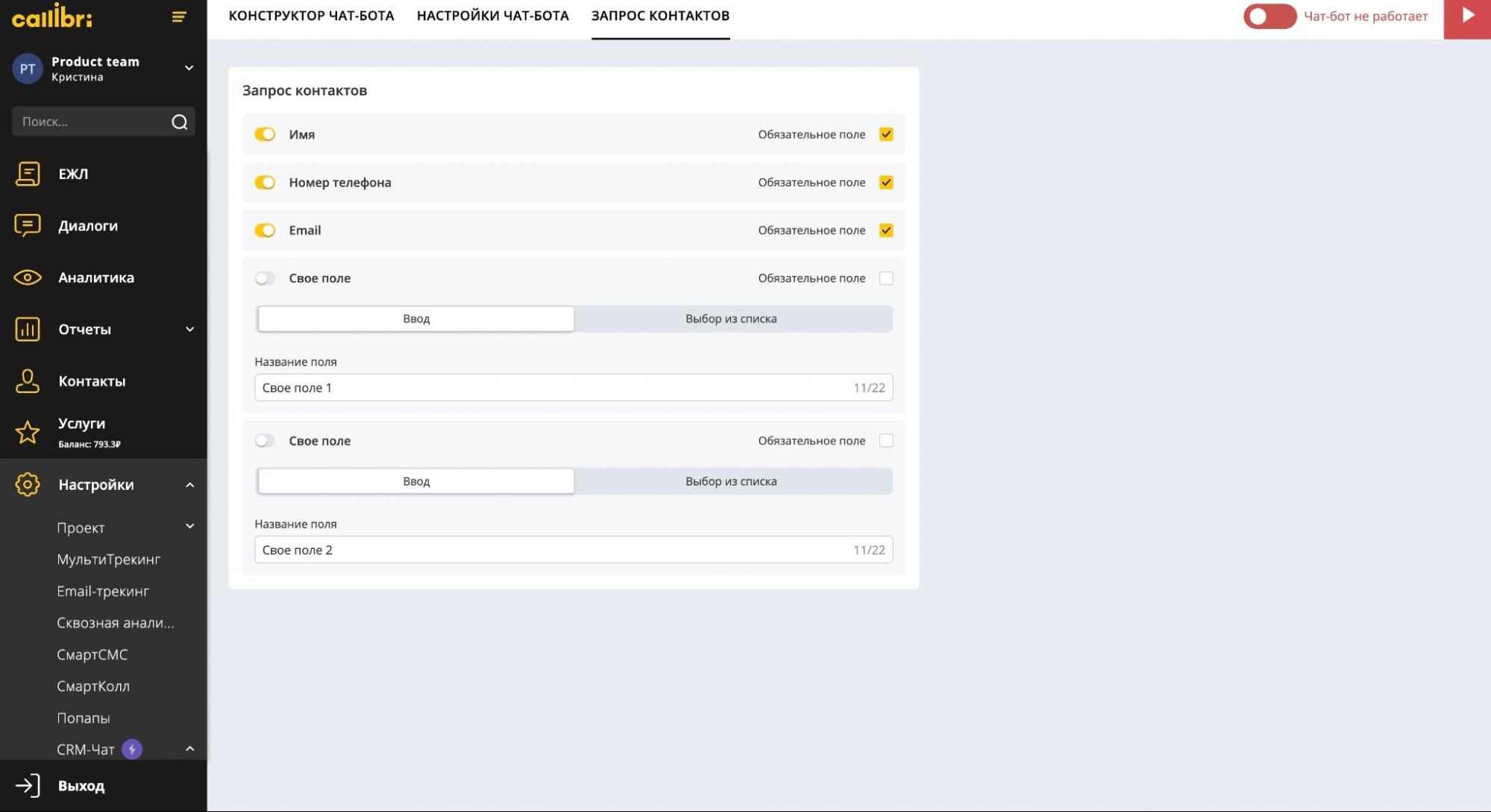 - Управление данными — за счёт интеграции с CRM вся история взаимодействий с покупателем собирается в одном окне. Это упрощает работу с клиентской базой.